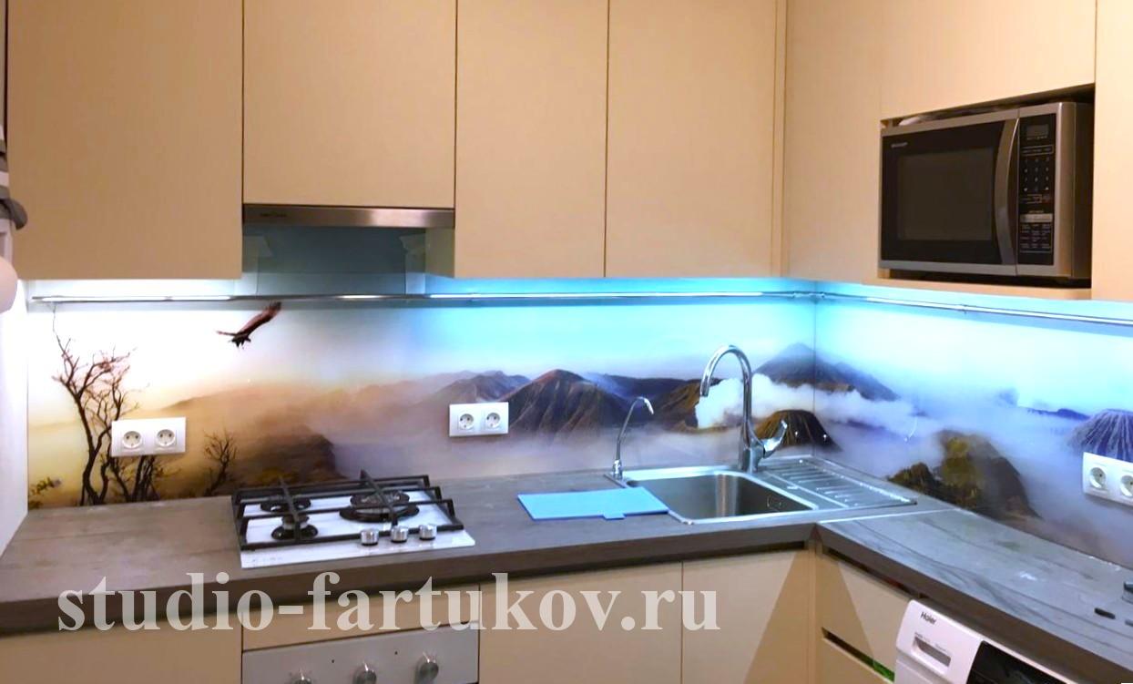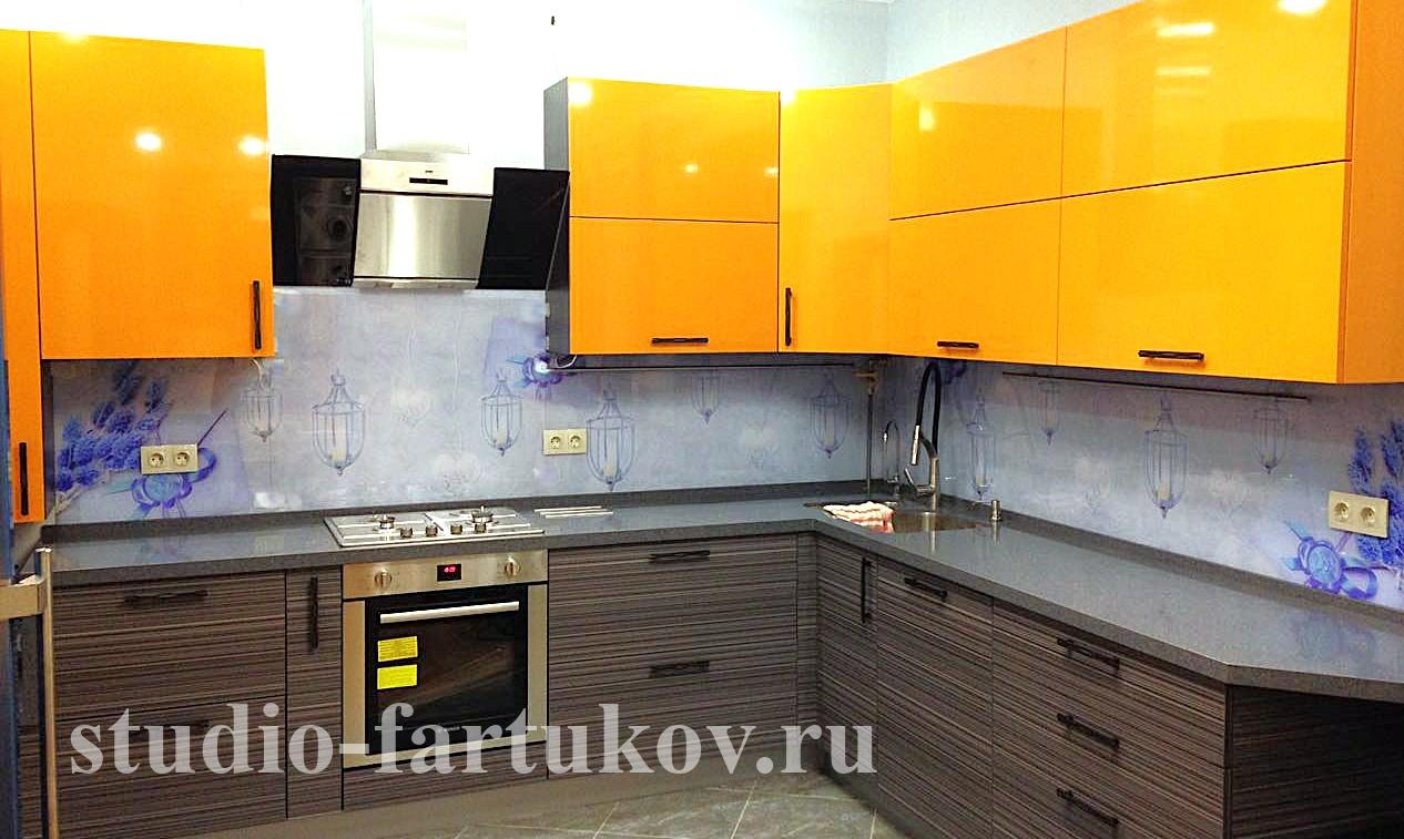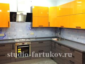 Фартук выполнен горизонтальным градиентом от оттенка, подобранного под цвет шкафа заказчика